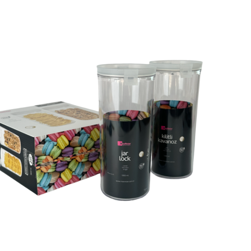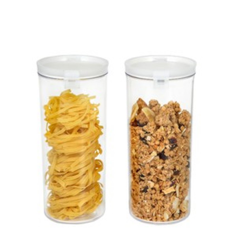 Набір контейнерів 2в1 для зберігання сипучих харчових продуктів виготовлений з високоякісного акрилу, що надає контейнерам міцності та естетичного вигляду. Завдяки своїй модульній структурі він забезпечує зручність розміщення його в ящиках та шафах.
