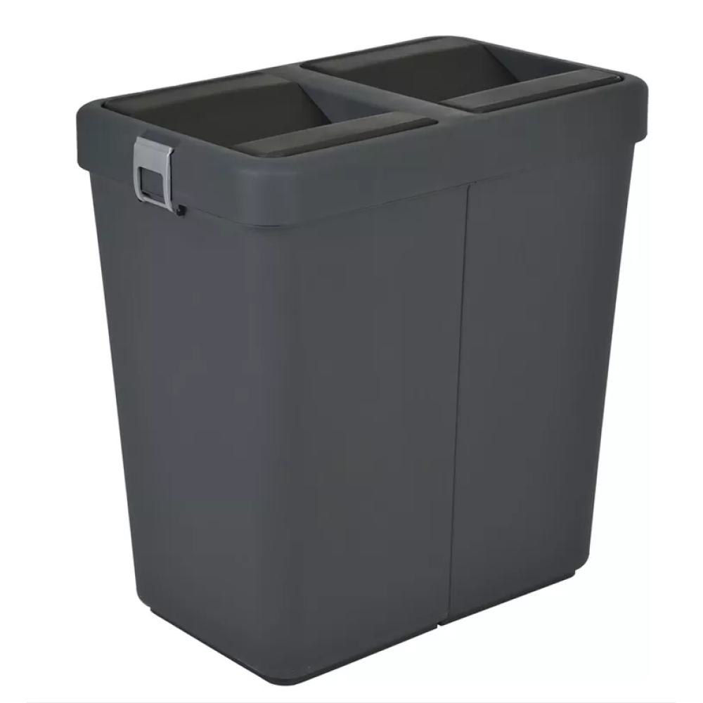 Відро для сміття – необхідний предмет на кожній кухні та у ванній кімнаті. Виготовлене з високоякісного міцного пластику, воно має естетичний та стильний вигляд, а також є практичним та зручним у використанні. Сміттєва корзина розділена на два відділення, що дозволяє зручно сортувати сміття. Відро оснащене знімною кришкою, яку додатково можна закріпити за допомогою застібок з боків. Обідок (кришка) надійно фіксує пакет для сміття. Сучасний дизайн відкривання та закривання кришки, що обертається на 180°, запобігає потраплянню запахів у навколишнє середовище та дає можливість викидати сміття, не торкаючись самого контейнера. Достатньо лише легкого натискання, щоб кришка відкрилася та знову повернулася в попереднє положення.