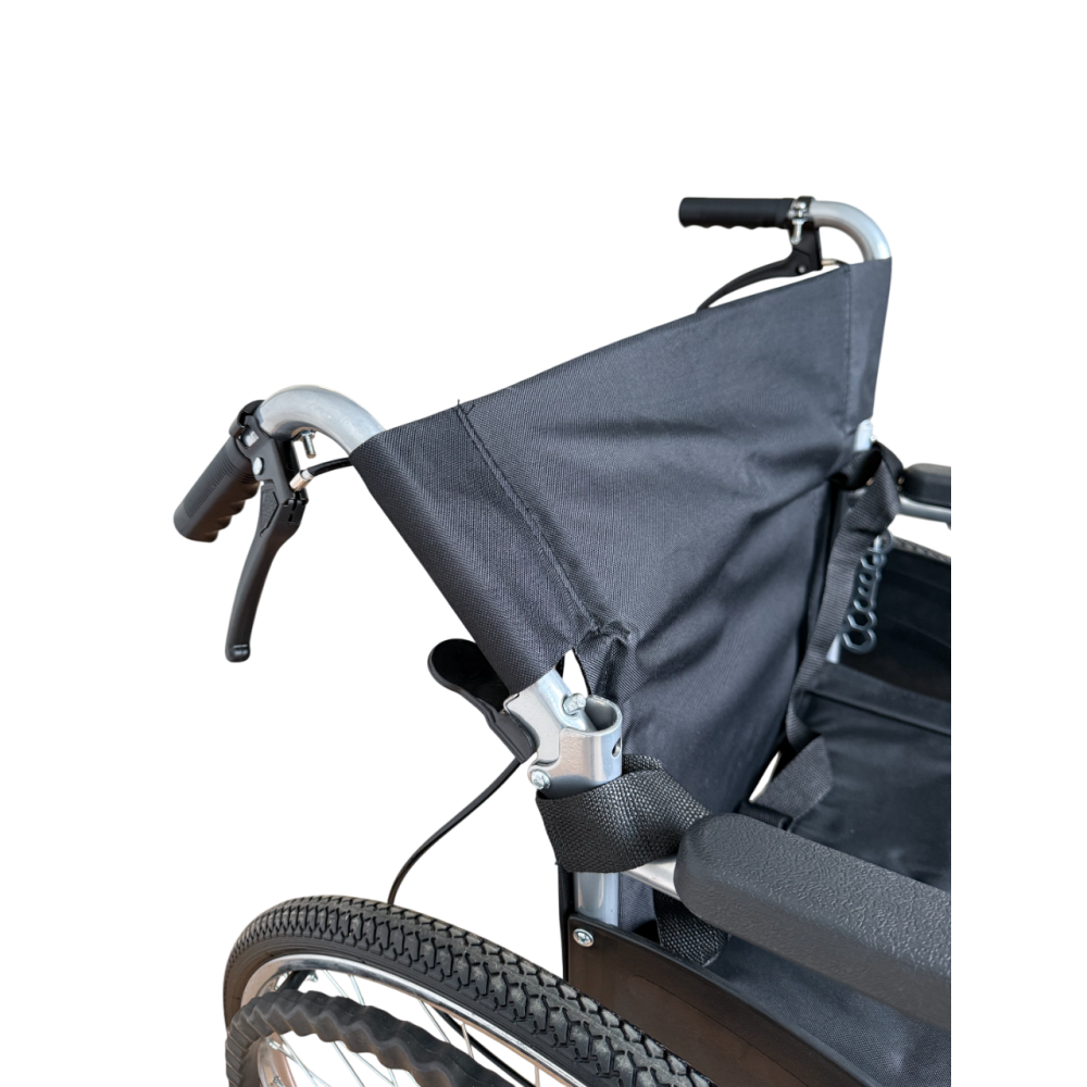 Інвалідний візок EXC-2010 призначений для комфортного пересування як у приміщенні, так і на вулиці. Керування можливе самостійно або за допомогою супроводжуючої особи — для цього ззаду передбачені зручні відкидні ручки.