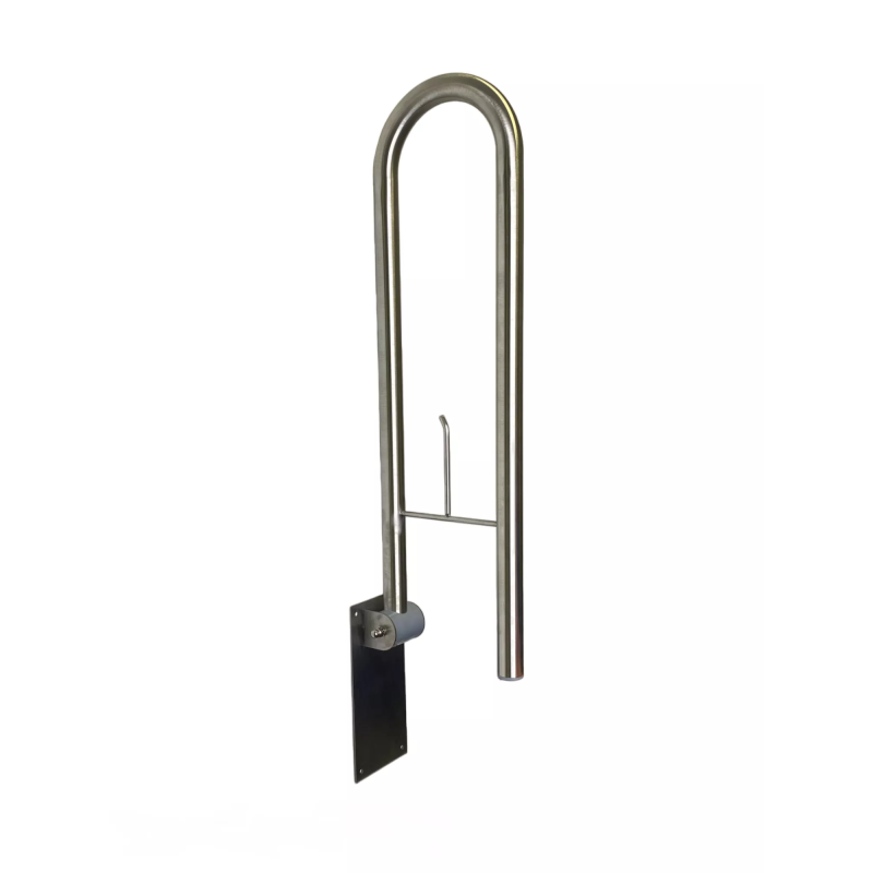 Такая модель перил отлично подойдет для монтажа даже в небольшом помещении, там где, например, для поручня под умывальник нет места. Поручни очень удобны и компактны за счет откидного механизма. Он позволяет переместить поручни из горизонтального в вертикальное положение и наоборот. Это можно с легкостью сделать вручную, обязательно чтобы сработал механизм блокировки.