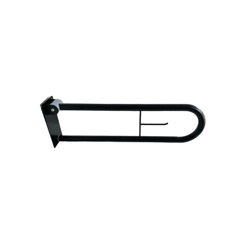 Откидной поручень черный, опора настенная для санузлов из нержавеющей стали Ø 32, размер 73*23*11см