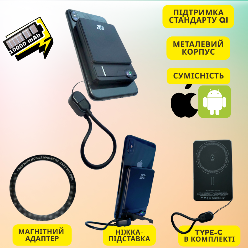 Одно устройство для всех ваших гаджетов! Благодаря мощным магнитам и поддержке стандарта Qi этот павербанк станет незаменимым аксессуаром как для пользователей Apple, так и для владельцев Android-смартфонов.