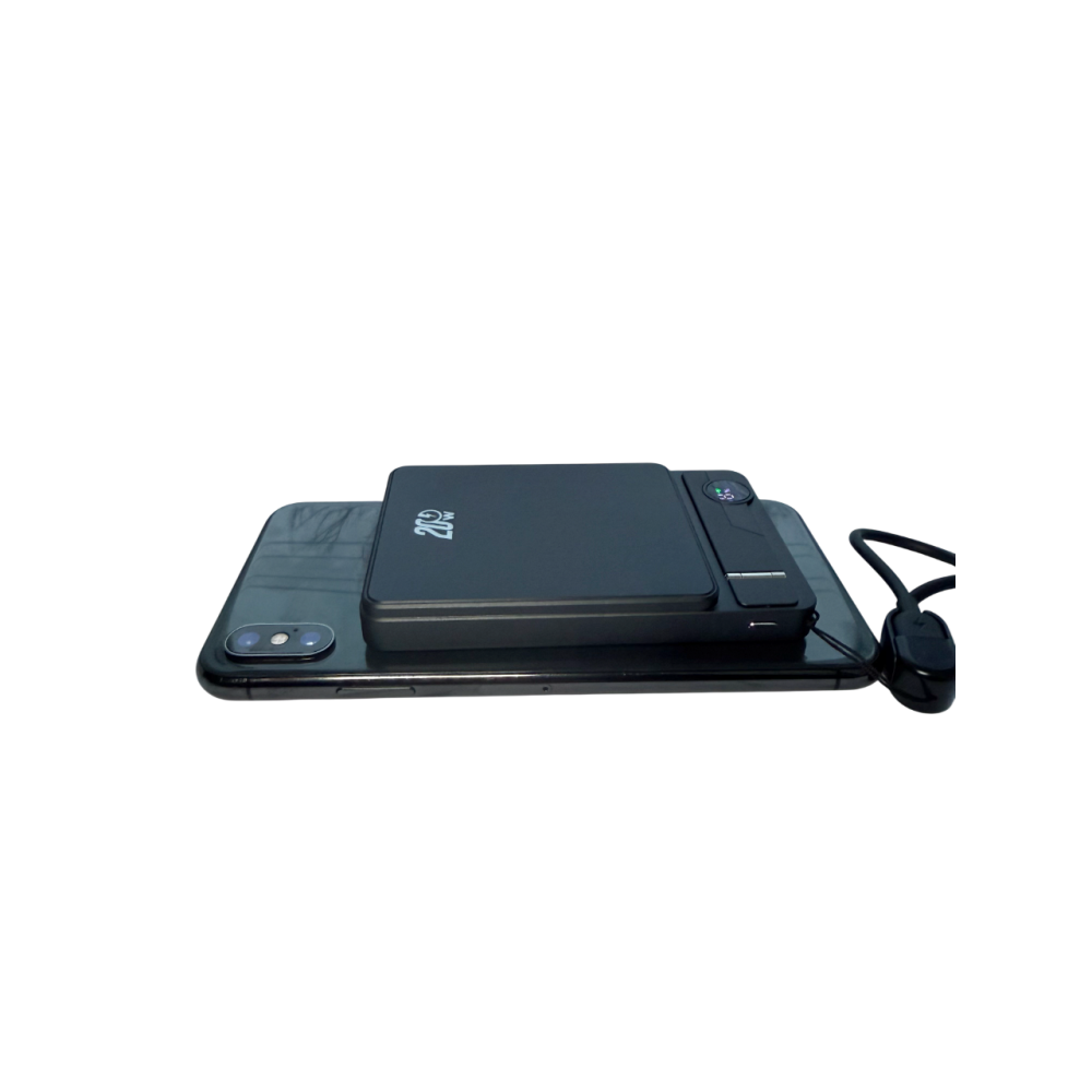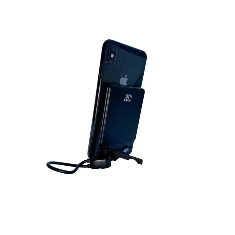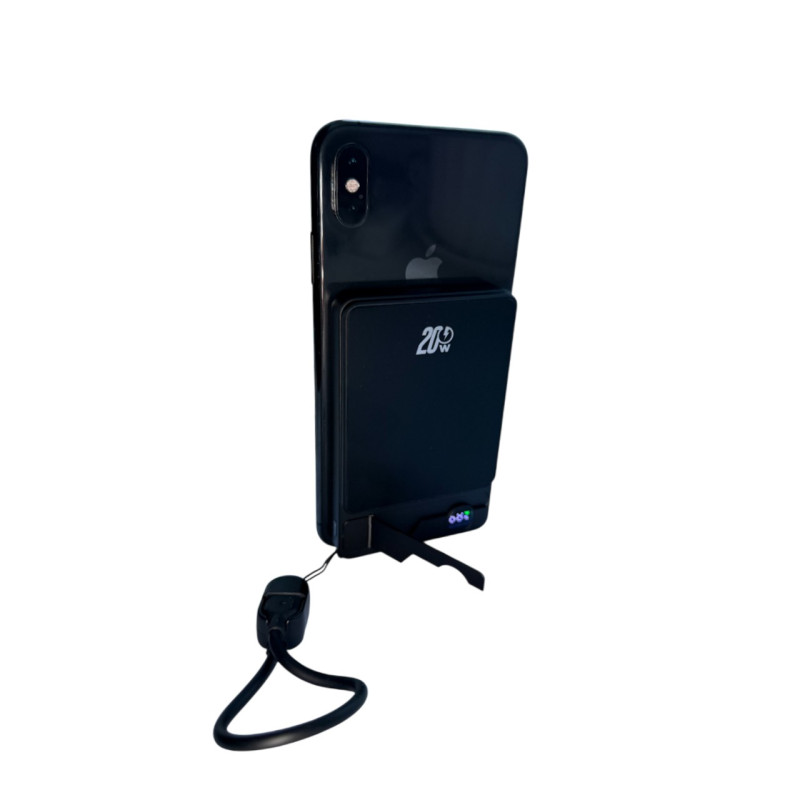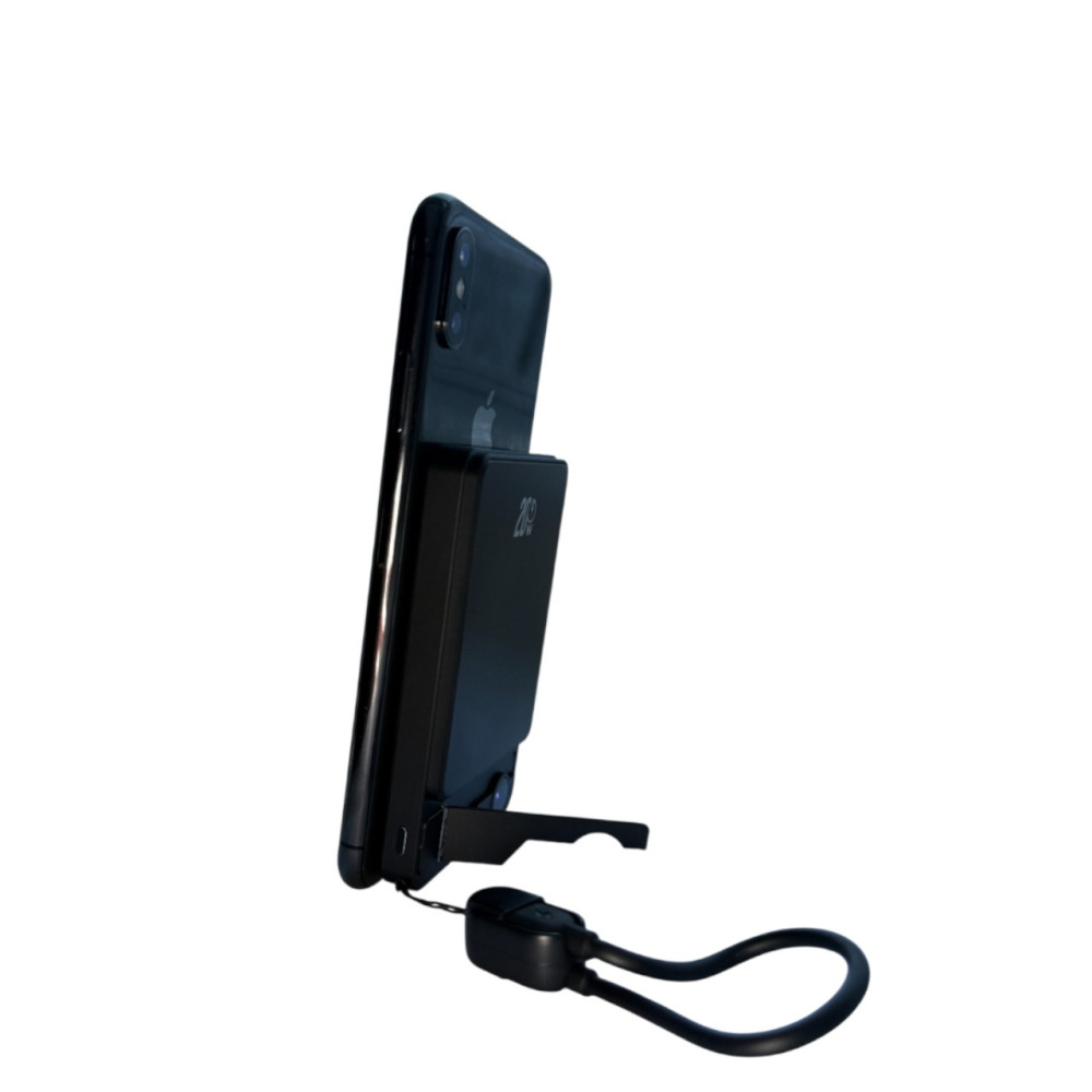 Ультратонкий повербанк 10000 mAh, беспроводная зарядка, магнитная крепь и ножка, цвет черный