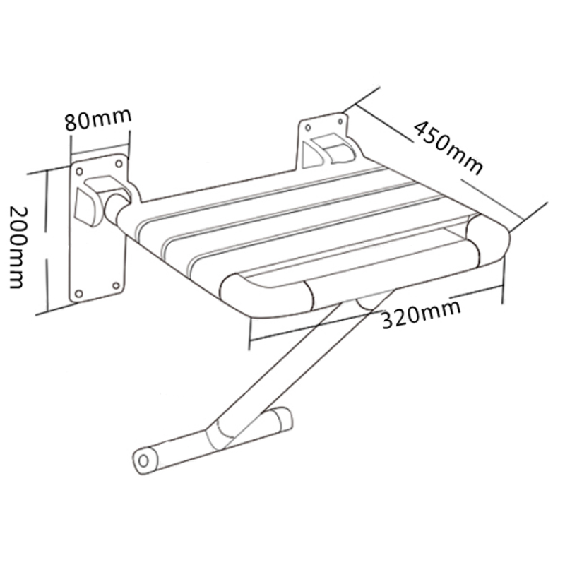 Розмір сидіння: ширина 320 мм, глибина 450 мм; висота кріпильної частини 200 мм, ширина – 80 мм.