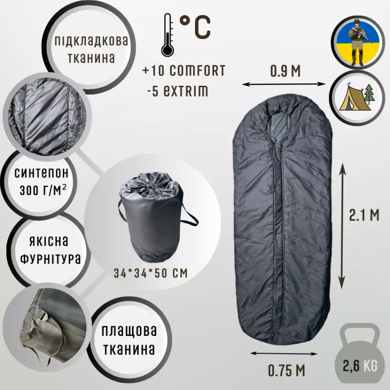 Высококачественный силиконизированный синтепон плотностью 300г позволяет удобно ночевать в нем, надежно сохраняет тепло.