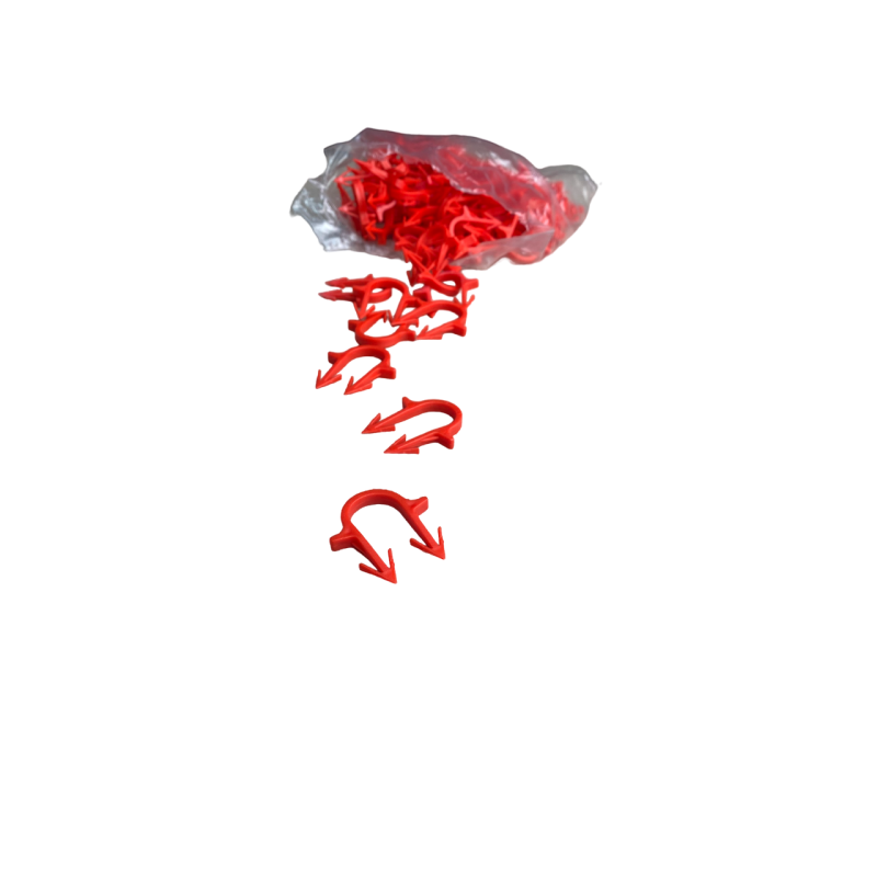 Скоба виготовляється зі штампованого полімеру, та являє собою кліпсу червоного кольору з пластиковими зубчиками.